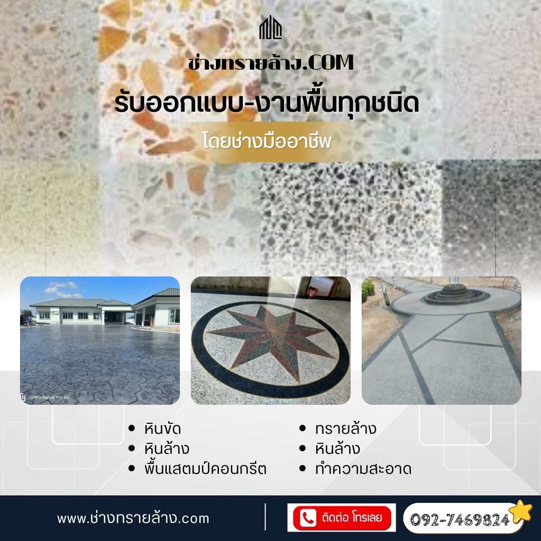 บริการรับทำหินขัด ทรายล้าง กรวดล้าง และหินล้าง อาทิเช่น งานตกแต่งผิวบริเวณบ้านพักอาศัย โรงอาหาร โรงรถ โรงแรม โรงเรียน ห้างสรรพสินค้า สถานราชการหรือศูนย์ราชการ หมู่บ้าน รีสอร์ท โครงการของหมู่บ้าน หรืองานตามแบบ มีสาขาประจำทุกจังหวัด ไม่จำกัดรูปแบบ รับประกันผลงานโดยทีมช่างมืออาชีพ ประสบการณ์มากกว่า 30 ปี ได้งานมาตรฐาน ในราคาเป็นกันเอง